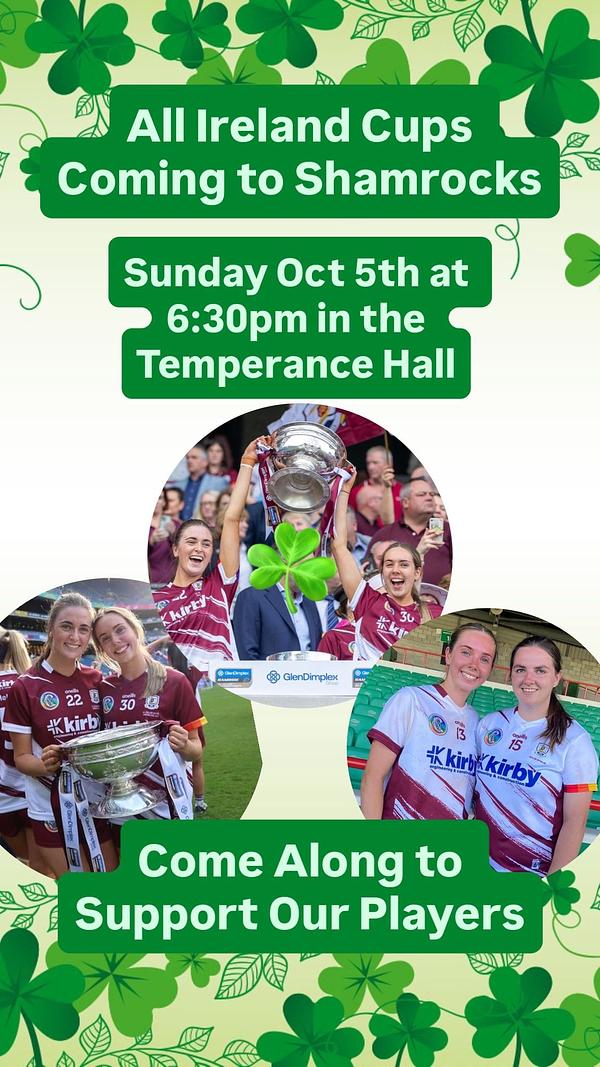 We have a very special night coming up this Sunday Evening at 6:30pm in the Temperance Hall, Loughrea when we welcome the All Ireland Cups and our Winning Club Players. We will have a great evening of entertainment lined up with